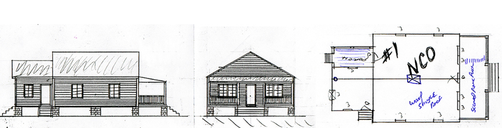 1) $120 N.C.O. QUARTERS n c o quarters 2) $150 BARRACKS barracks 3) $150 MESS HALL mess hall