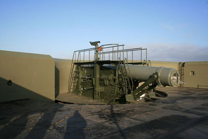 We are proud to display this view of the entire Fort as it existed in the past. It dipicts the layout of the Fort Fremont buildings and grounds, circa 1910. Also included are detailed miniatures of the two batteries, and the disappearing guns which were mounted above the pits below Battery. Thank you for visiting.